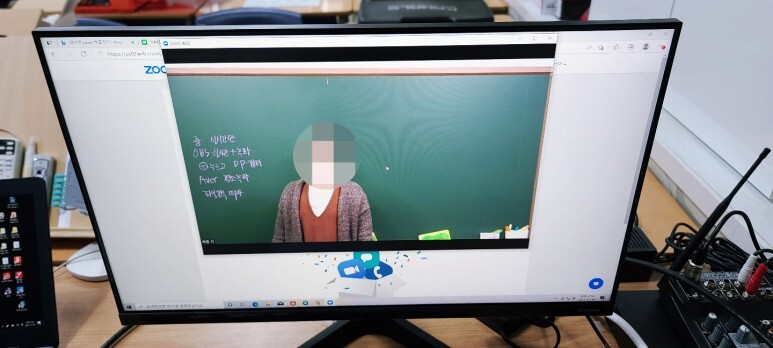 캠코더를 이용하여 녹화가 진행되는 동시에 실시간 줌수업도 가능한 시스템으로